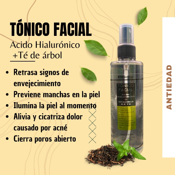 TÓNICO FACIAL DE ACIDO HIALURONICO + ÁRBOL DE TE, CONT.NET. 125 ML, SC-1210, ID: 3205