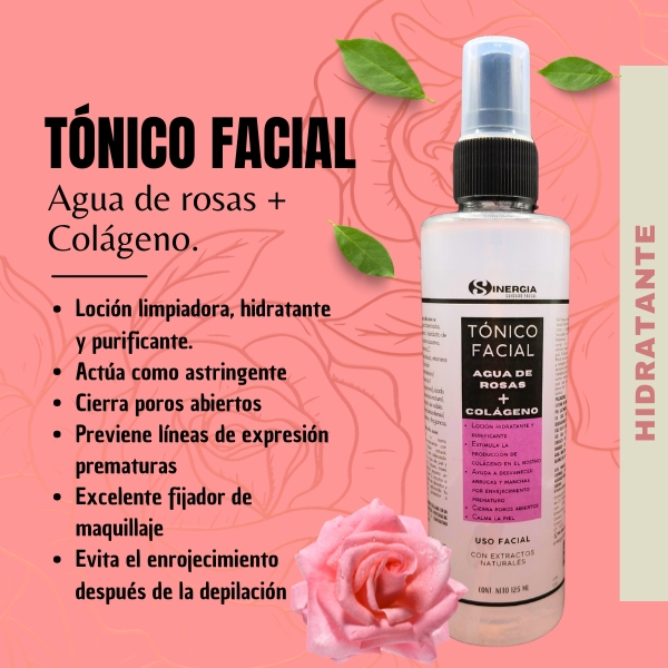 TÓNICO FACIAL DE ROSAS + COLÁGENO, CONT.NET. 125 ML, SC-1208, ID: 3207