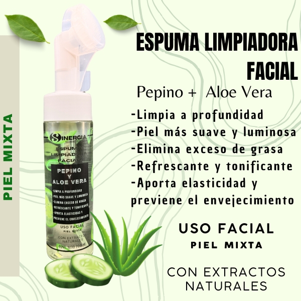 ESPUMA LIMPIADORA FACIAL DE SÁBILA Y PEPINO, CONT.NET. 200 ML, SC-1202, ID: 3214
