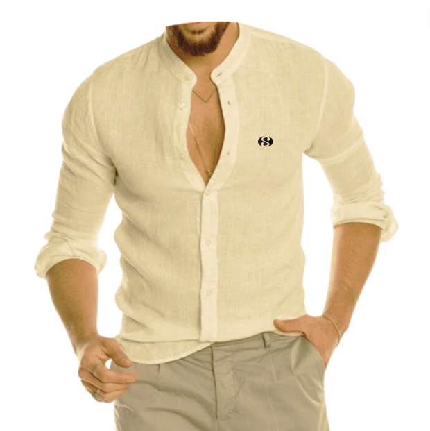 CAMISA PARA HOMBRE SINERGIA, COLOR: BEIGE, TALLA: S (CHICA), CUELLO MAO MANGA LARGA ID: 5294